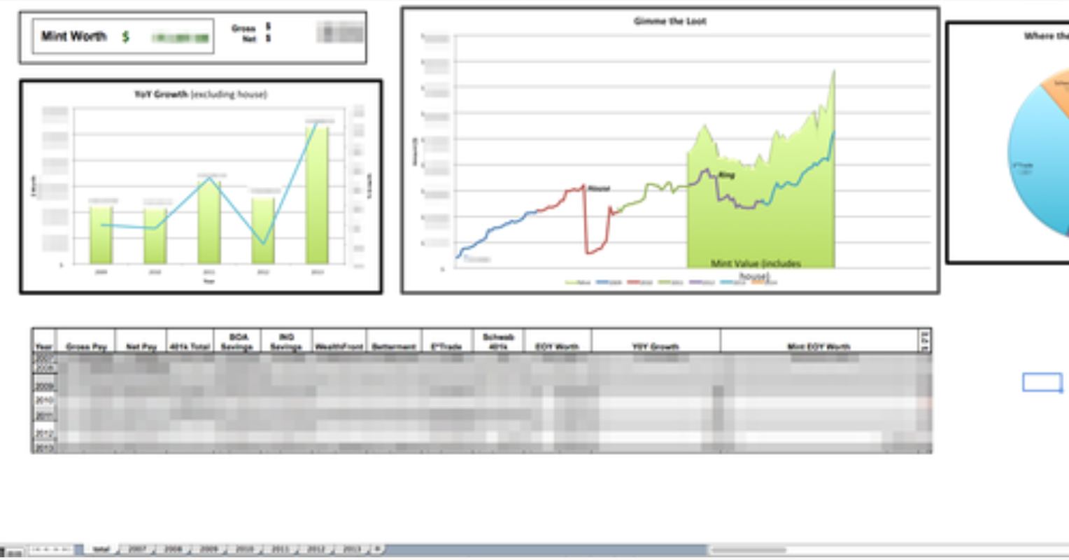 - Updated my spreadsheet that I started in 2007 and have updated every pay period since then to include my wifes assets as well so we can track past earnings and forecast going forward.