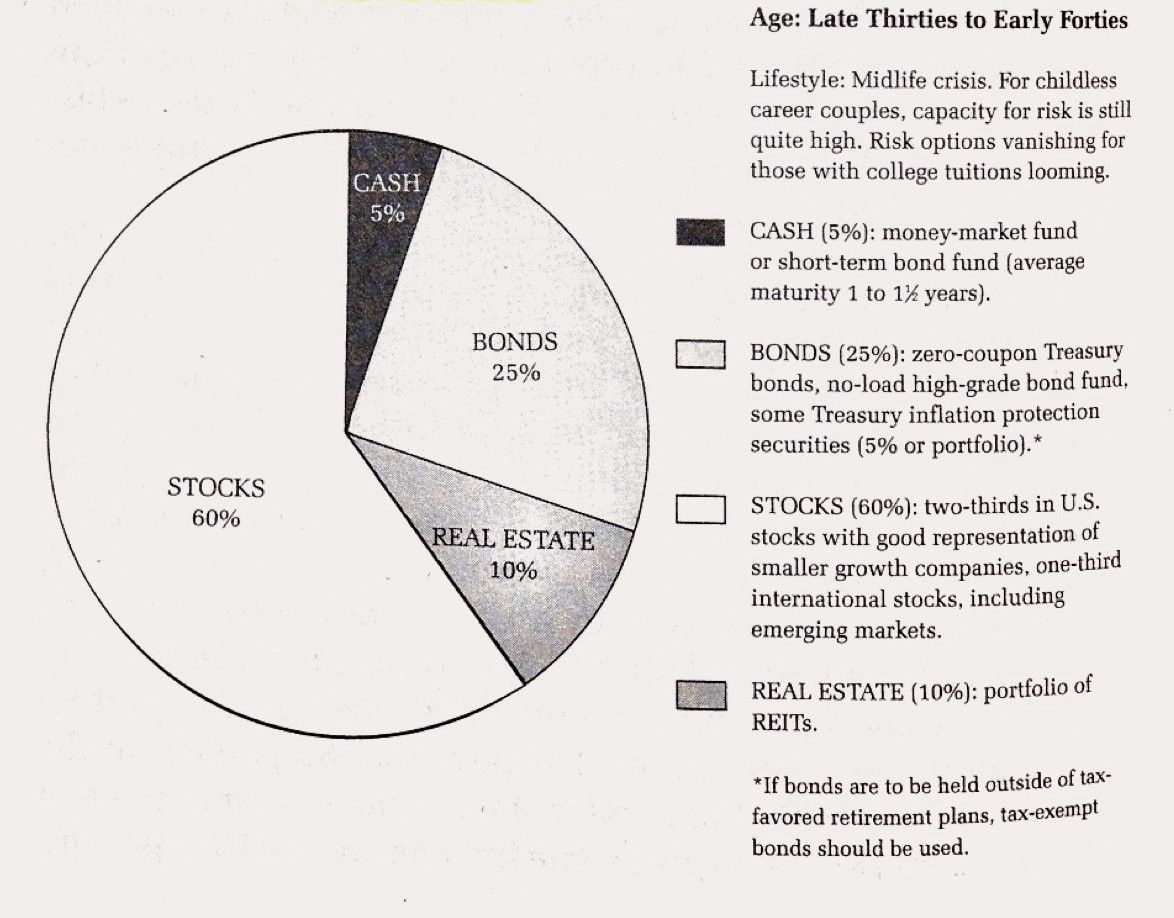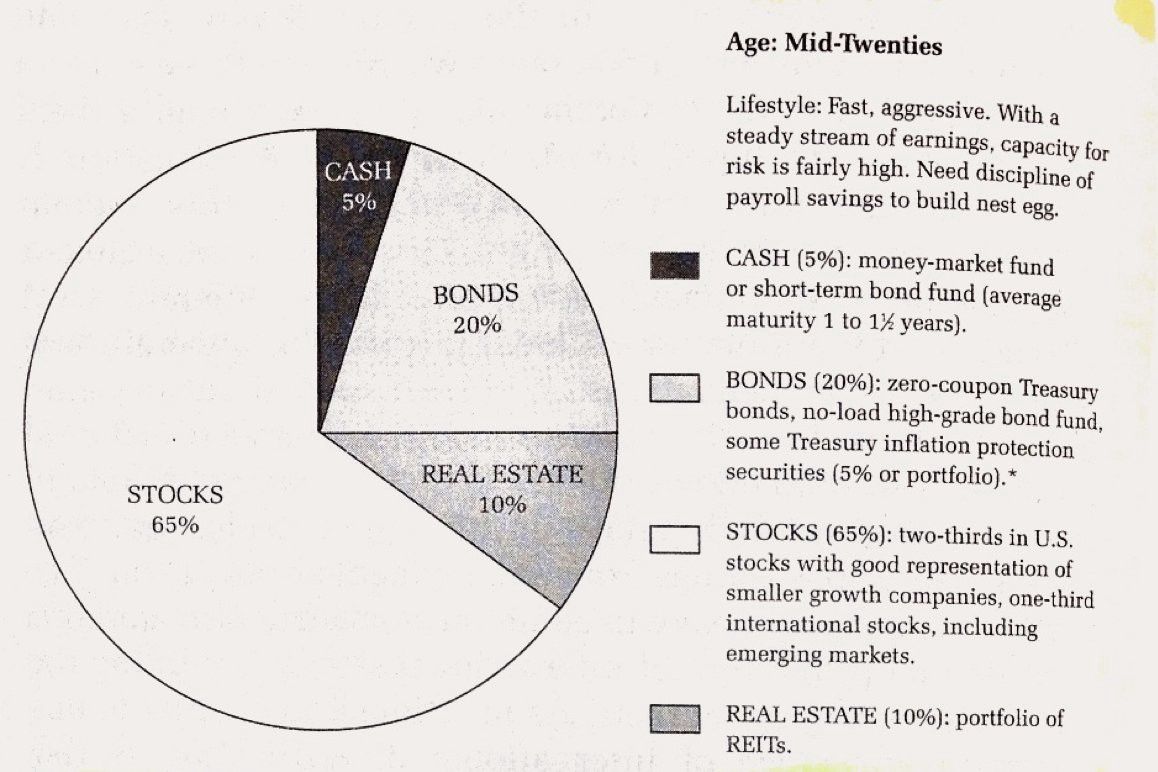 How you’ve divided your investment 💲. Super personal — dependent on age, risk tolerance, economic outlook, retirement goals, spend needs… Attached examples from ‘A Random Walk on Wall Street’