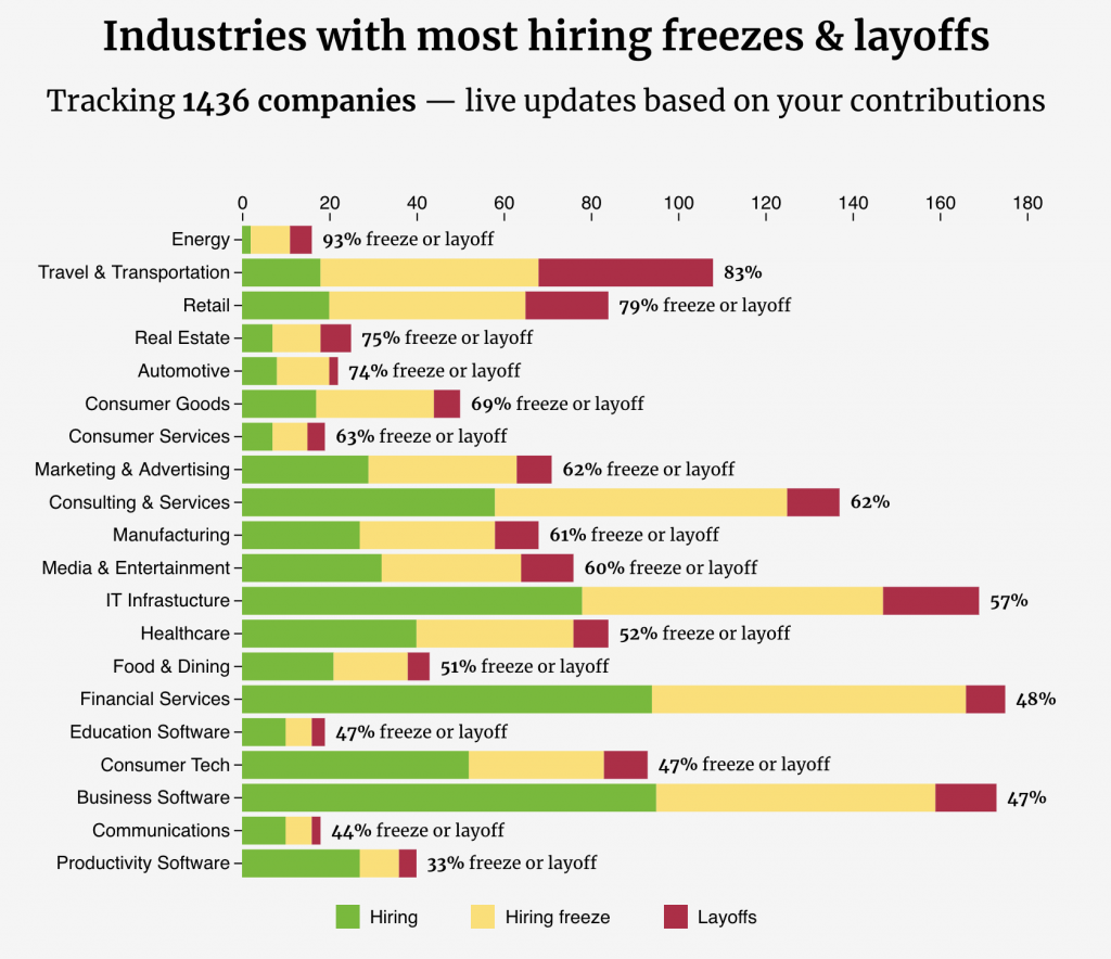 Candor put together a list of companies with their hiring status (frozen, active, laying off). Far from exhaustive but some of my audience may find it useful. They also have an informative guide for handling layoffs. Know your rights.