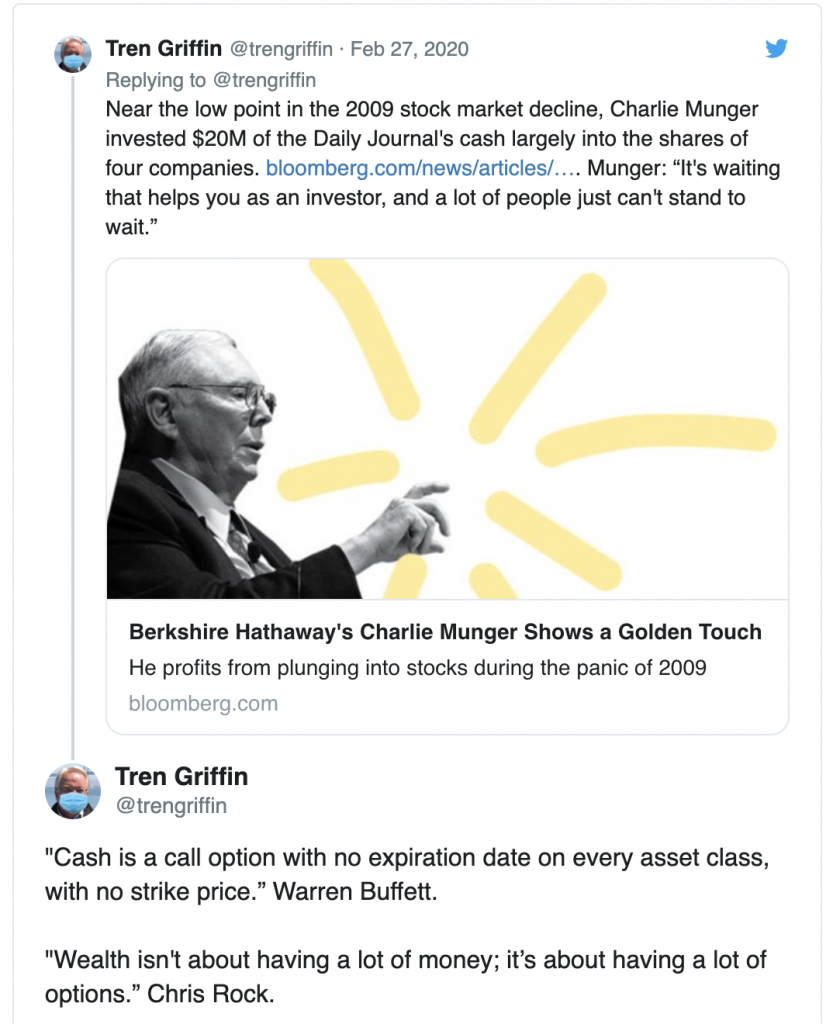 Tren Griffen sends a very Tren Griffen tweet. Cash is king.