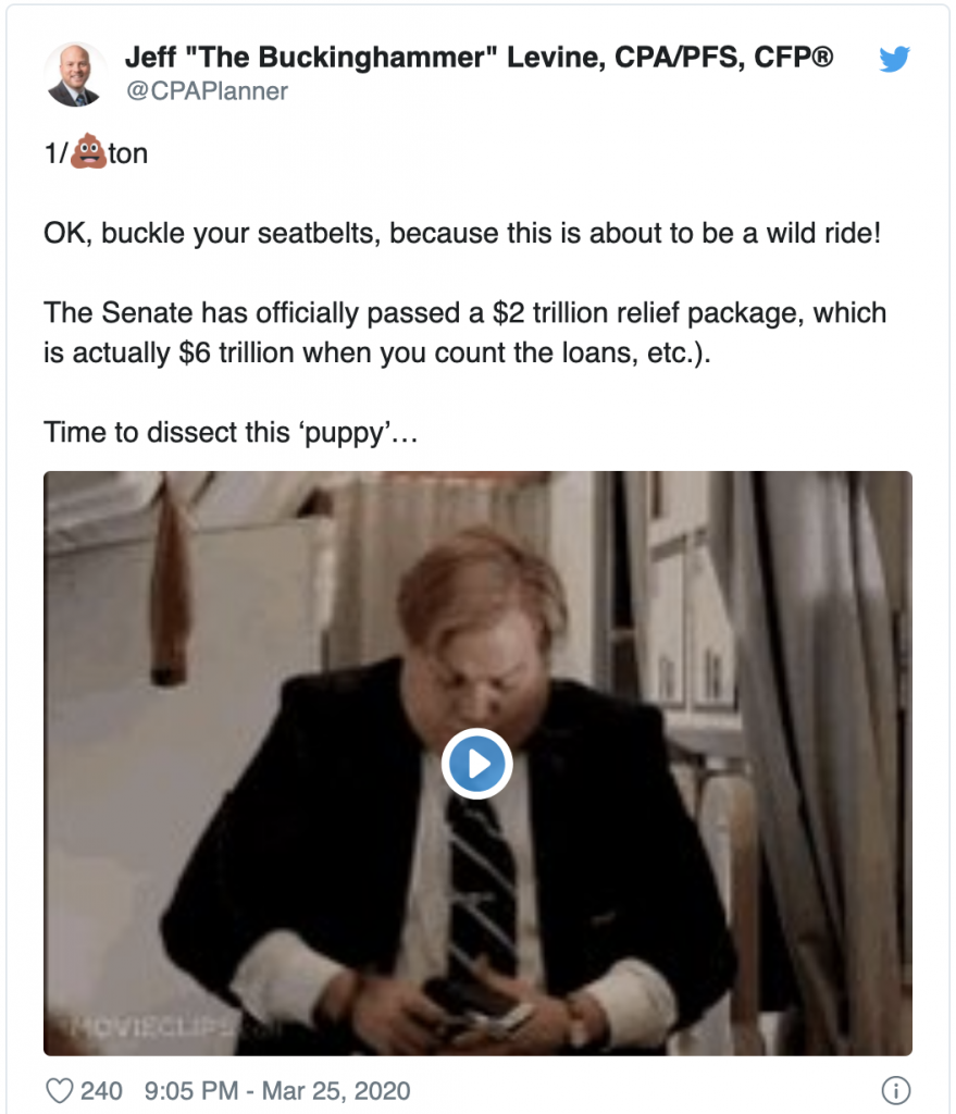 And here’s a deeper dive from Kitces: Analyzing The CARES Act: From Rebate Checks To Small Business Relief For The Coronavirus Pandemic.