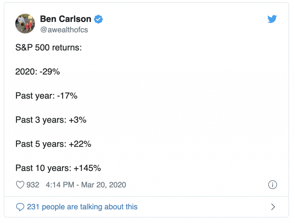 Ben Carlson reminded us where we’re at with the S&P 500: