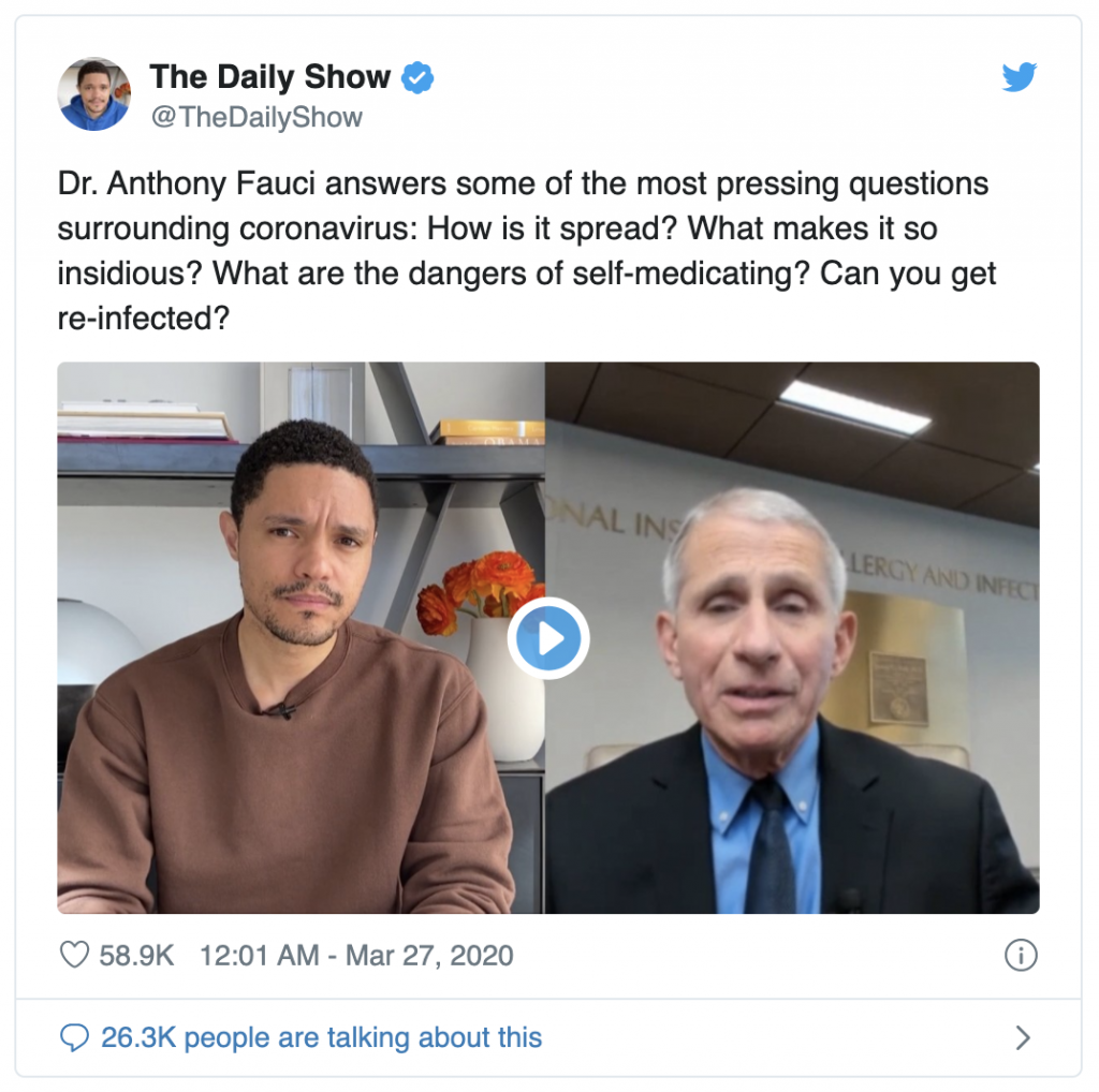My wife and I look forward to hearing Dr. Birx and Dr. Fauci talk every day.