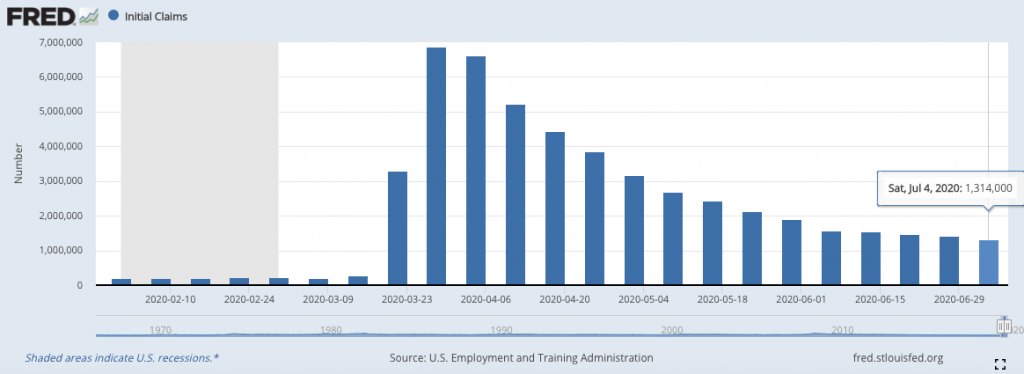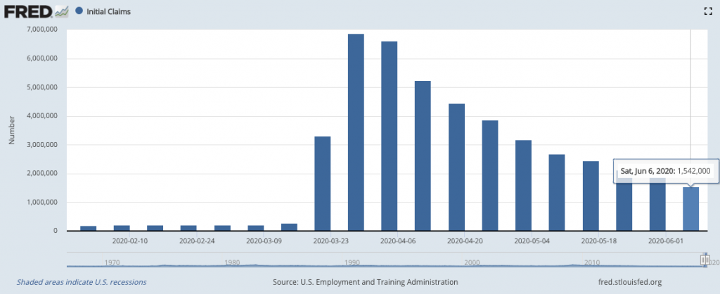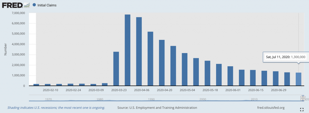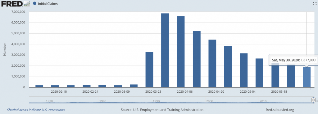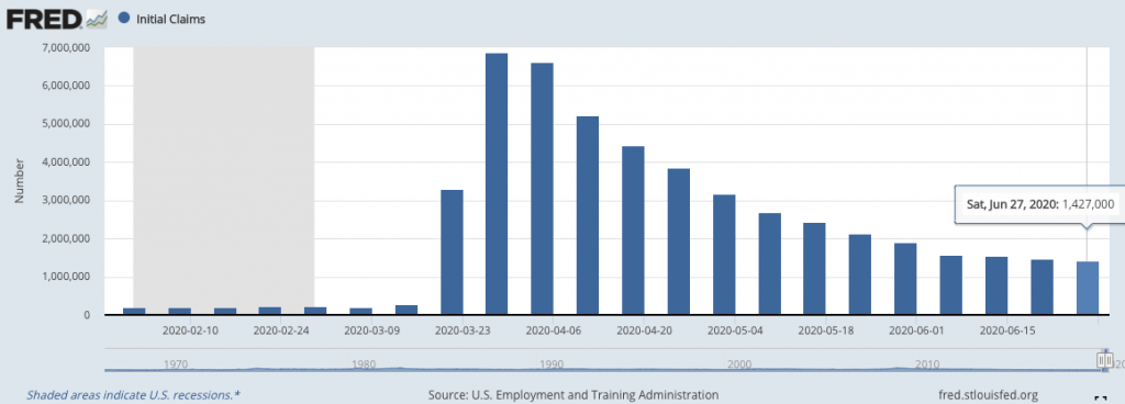Jobless claims rose another 1.87M. The total for the last 11 weeks is 42M. For context, the entire GFC of 08-09 saw just over 37M.