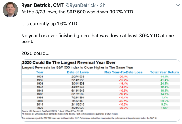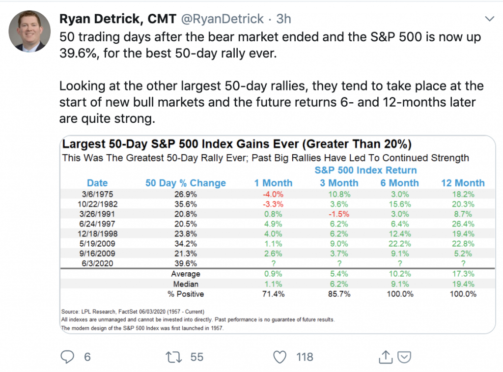 Ryan Detrick called attention to this being the best 50-trading-day rally, ever.