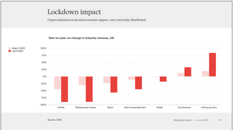 - A second virus wave resulting in another official lockdown or an unofficial behavior shift, where people no longer feel safe to leaving their homes.