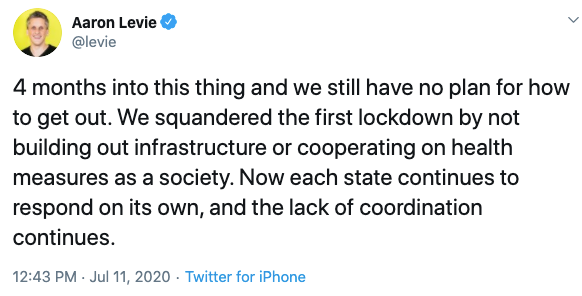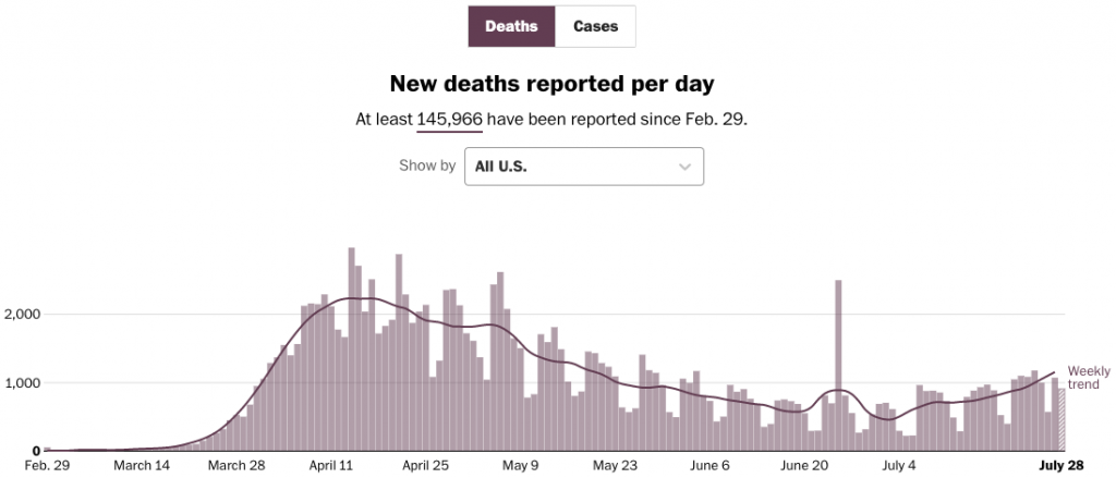 The US is now above 150,000 deaths. It’s so sad. I’m reminded of March when we just had a couple thousand officially reported COVID deaths and saw the freight train coming.