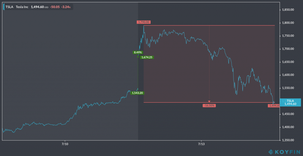 Thursday. Finally– red. Who knew stocks could go down? Nasdaq closed -2.3%, Dow -1.3%, S&P 500 -1.2%, and the Russell 2k was flat. Silver calmed down a bit, shedding 1.64%, but gold marched forward by 1%. Tech bled the most, closing -2.6%. Tech fan favorites let out some steam. $TSLA -4.98%, $AAPL -4.55%, $MSFT -4.35% and the list goes on.