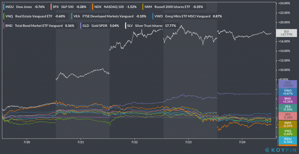 Wednesday. All green. Dow and S&P 500 +.6%, Nasdaq +.24%, Russell 2k +.18%, $GLD +1.5%, $SLV +9%. Watch Silver fly: