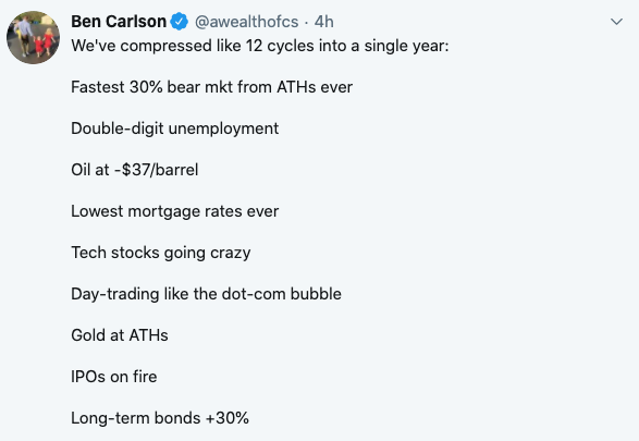 Stay rational, limit mistakes, cut through the noise, recognize your own biases, and think for yourself. And don’t forget, be grateful. As I wrote back on May 3rd, “Anyway, as usual, we’re ultimately just thankful that we’re still healthy and employed. That’s what matters most during pandemics and economic crises.”