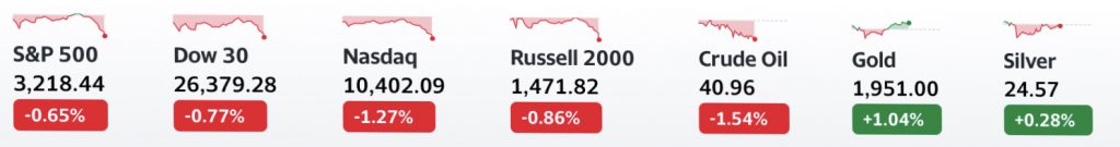 Thursday. Finally– a bloody stock day! It feels right. It feels rational. The Russell 2k closed down 7.6%, Dow down 6.9%, S&P 500 down 5.8%, and the Nasdaq tumbled 5% from its 10k ATH yesterday to 9,592. The energy and financial sectors bled the most, falling 9.5% and 8.2%. Gold is down .5% and $btc dropped 5%. Why the fall, one might ask? Perhaps it’s the abysmal economy and reality that we have a serious pandemic on our hands that isn’t going anywhere. But one may reply, ‘that’s not news.’ And we land back on the fact that nobody knows shit but rationality often wins out. I’m excited to see what the markets do tomorrow.