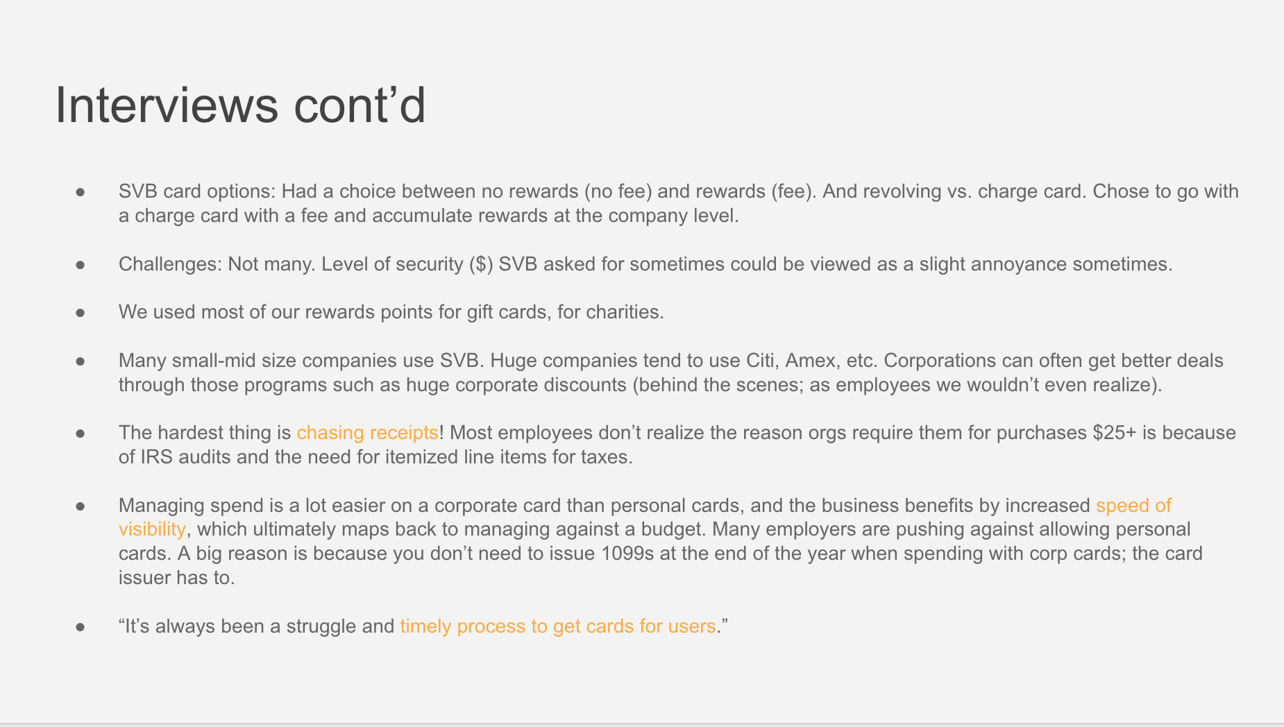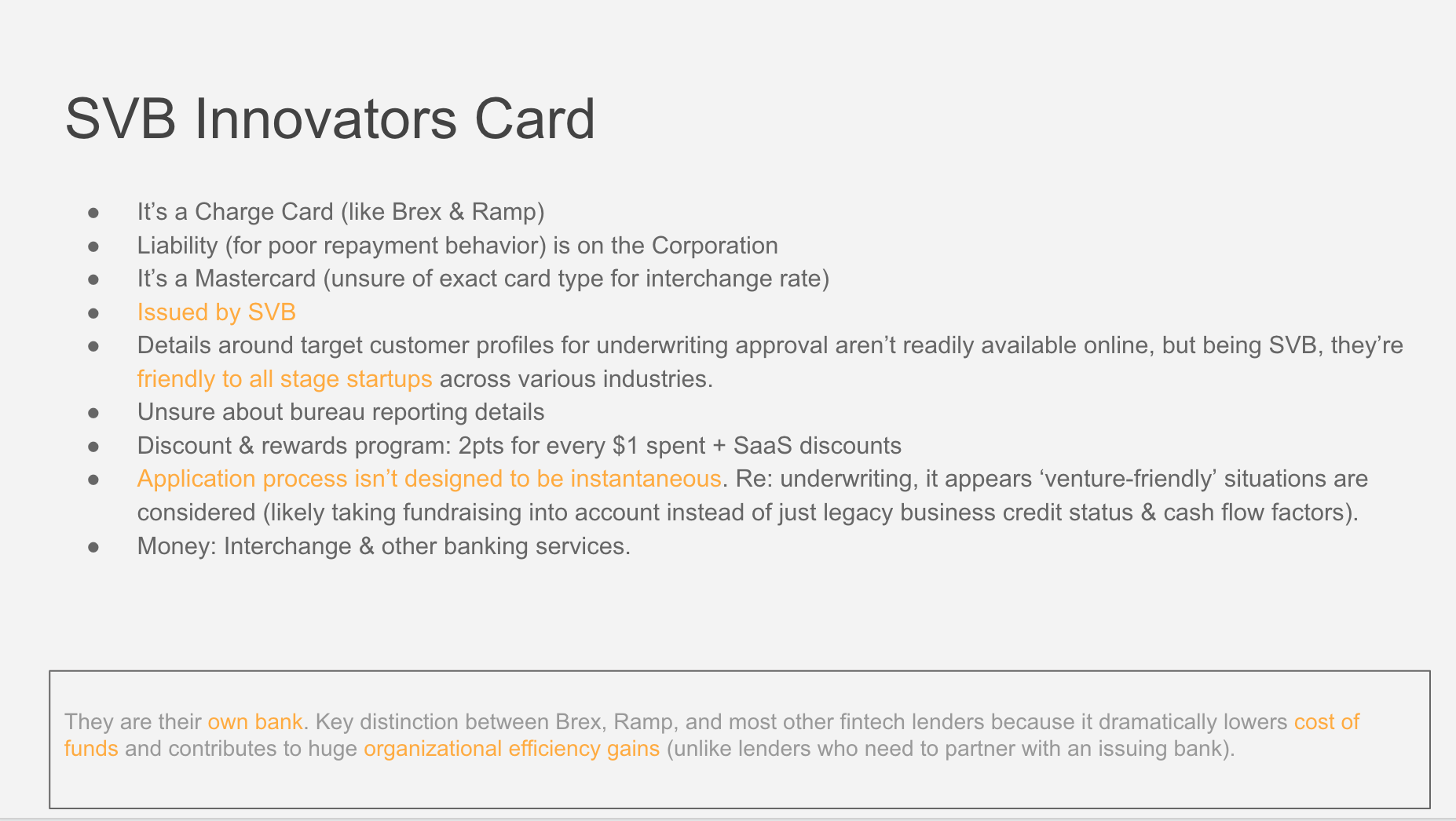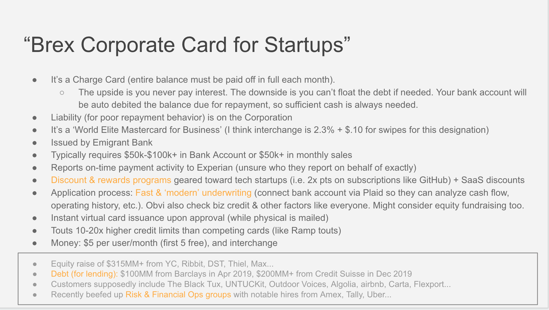 Analyze new players in the corporate card space since it appears to be increasingly garnering attention (and VC $$$), and identify a new product opportunity.