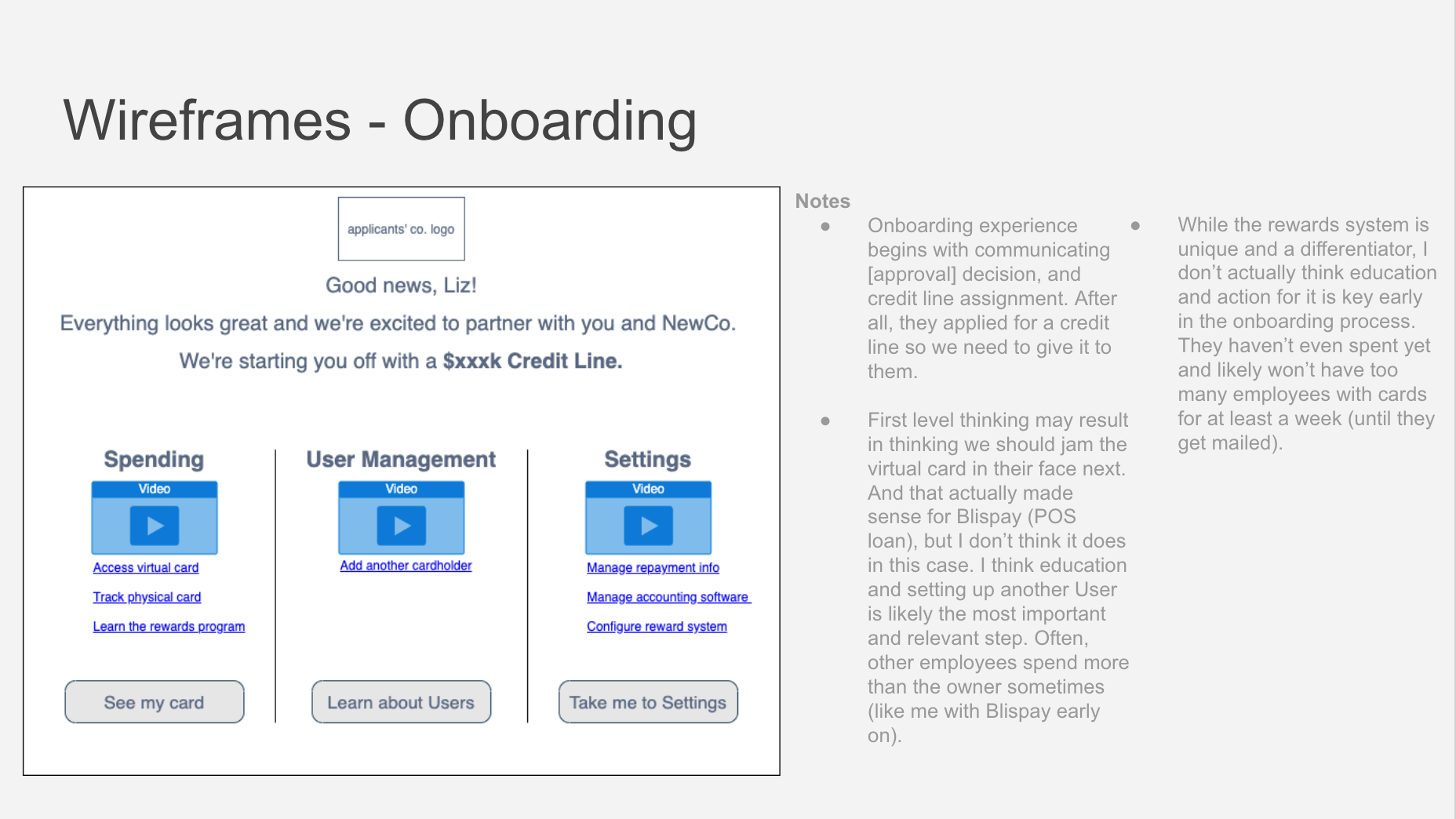 I believe the most beautiful corporate card is one that’s near-invisible. I don’t think business operators want to have to think about this part of their operation at all. They just want to be able to get one quickly that meets their needs, have someone manage their employees’ access, and have it all tied to their expense management and accounting software seamlessly. It should be near-invisible. BUT, people like seeing things, which is why product managers lean on drawing and wireframing so often before roping in their UX buds.