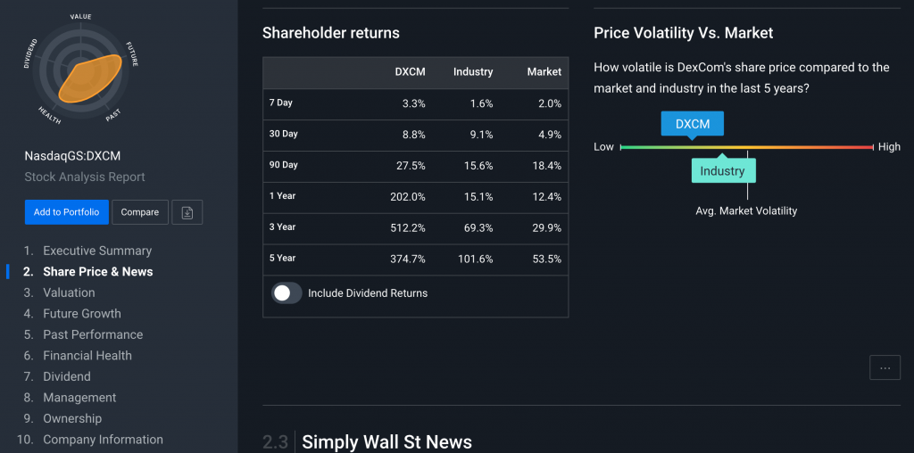 I toyed around with the free trial for Simply Wall St. It’s pretty cool and I wish Koyfin combined forces with them for their stock analysis report.
