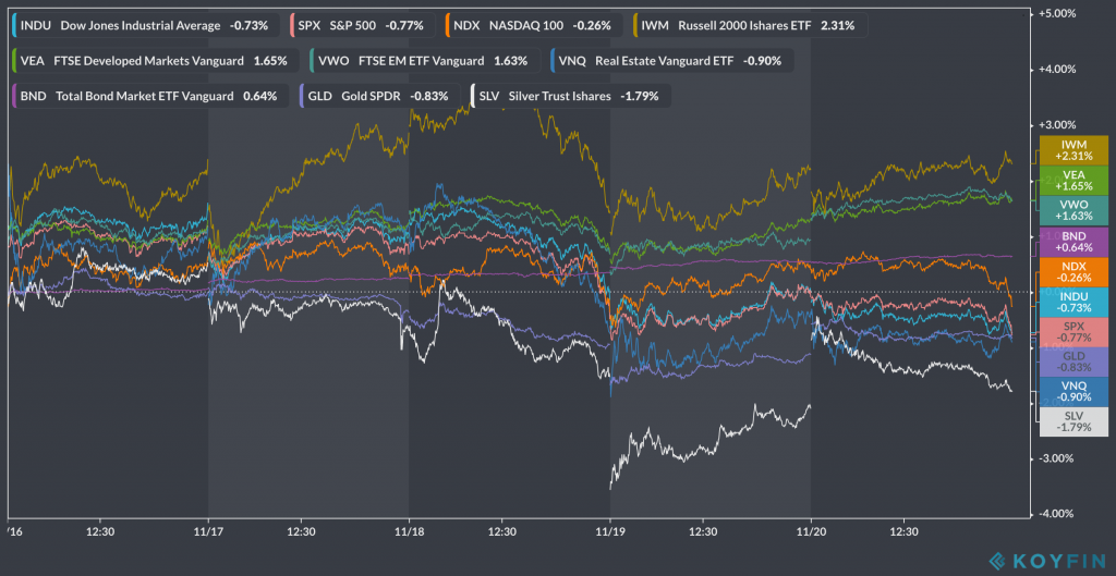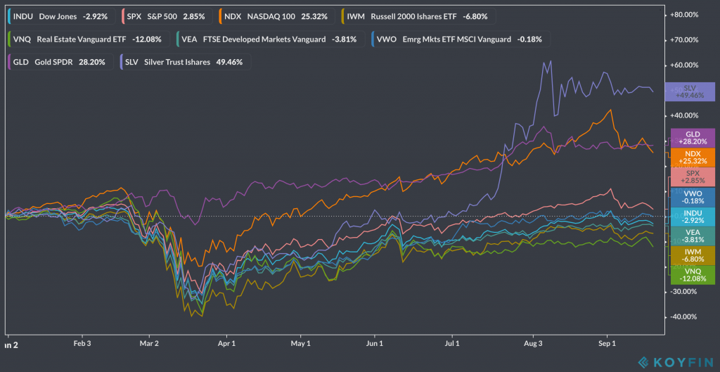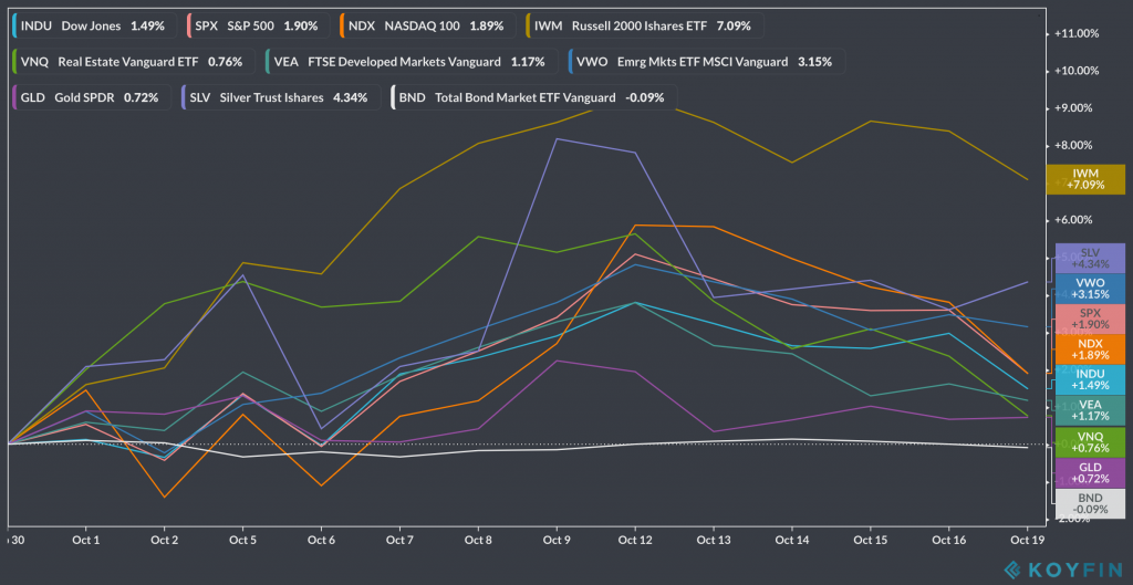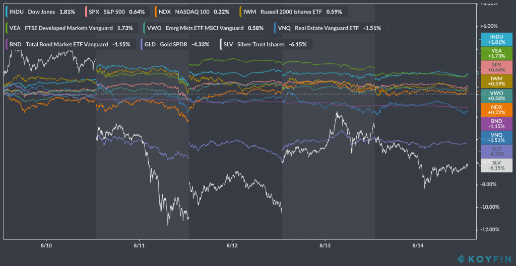 Friday. All of the major US indexes are positive for the week so far. Same with developed, emerging markets, gold, and silver.