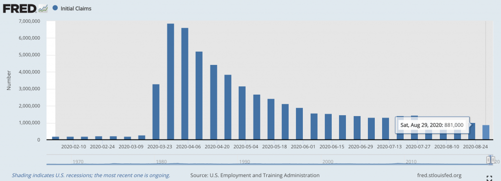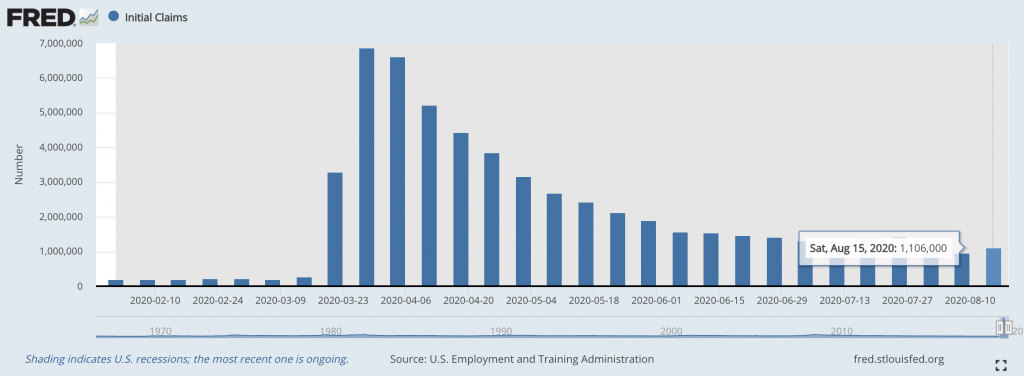 The $600 unemployment benefit expired, and a new package still hasn’t been agreed on yet. It’ll be interesting to see how long it takes to wrap it up and what it’ll look like. It sounds like it could take at least one more week. Next Jobless Aid Bill Could Decide Path of U.S. Economic Rebound.