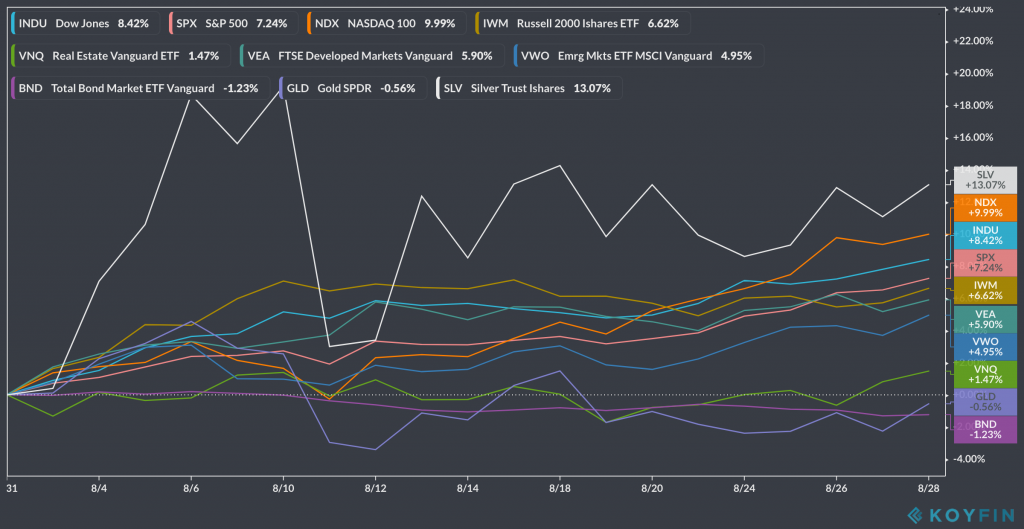Saturday. Two more trading days left in the month. Here’s how August looks so far: