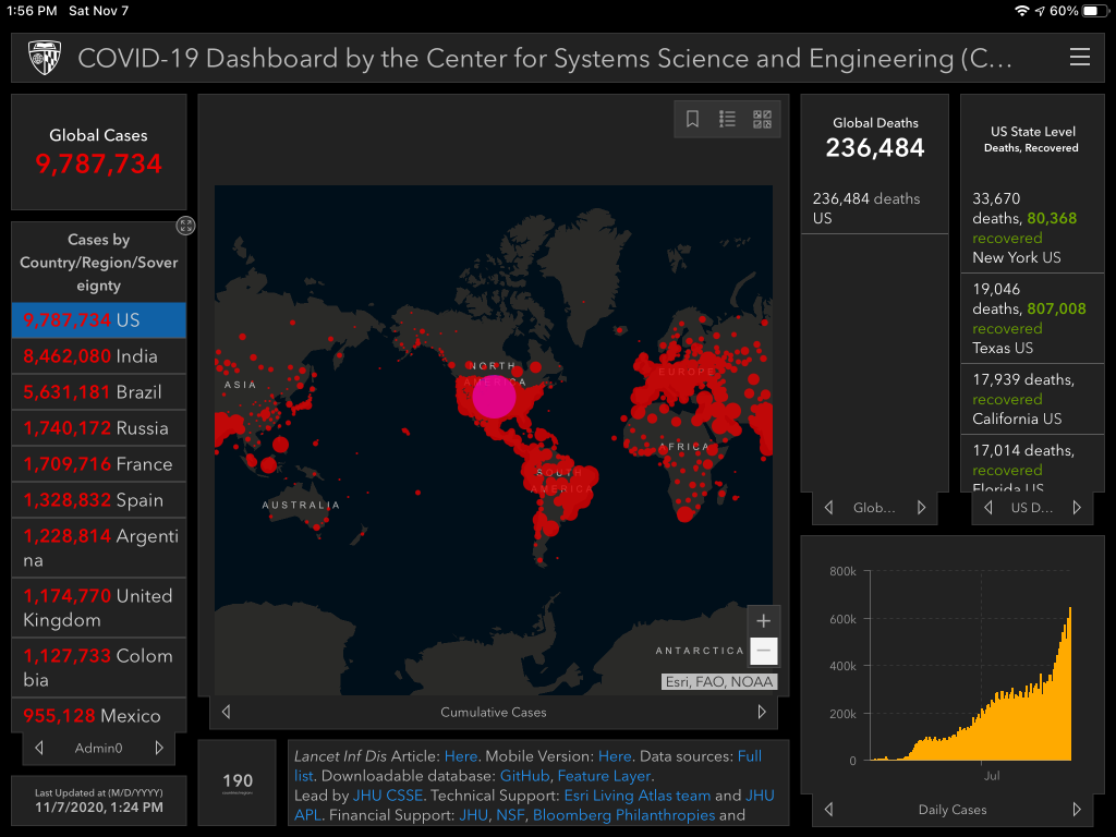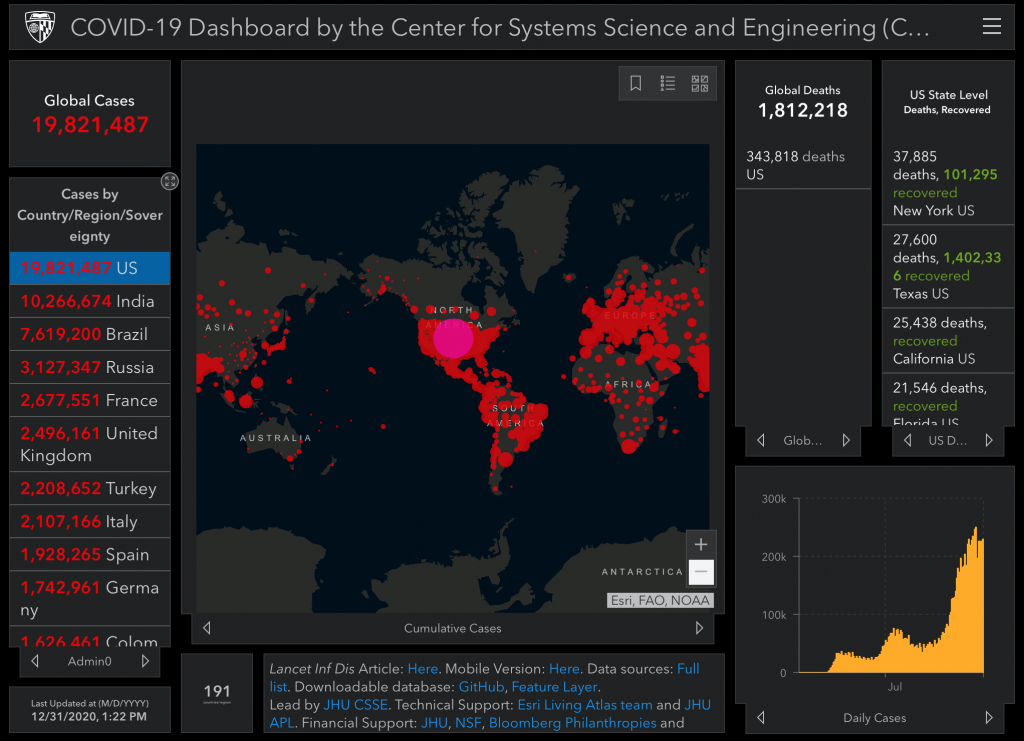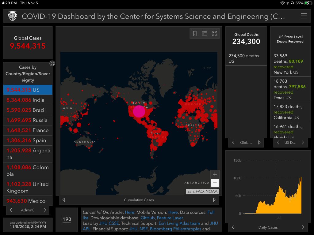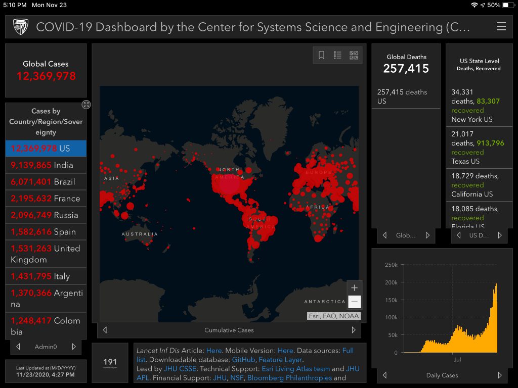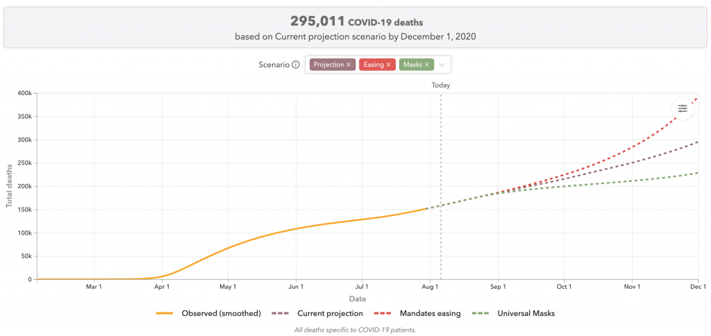 New Covid-19 Death Forecast Sees Big Cold-Weather Boost in Cases summarizes new projections from the Institute for Health Metrics and Evaluation at the University of Washington’s School of Medicine. “Covid-19 deaths could rise to 410,451 by the end of 2020. In a worst-case scenario, there could be 620,029 fatalities, according to the estimates.”