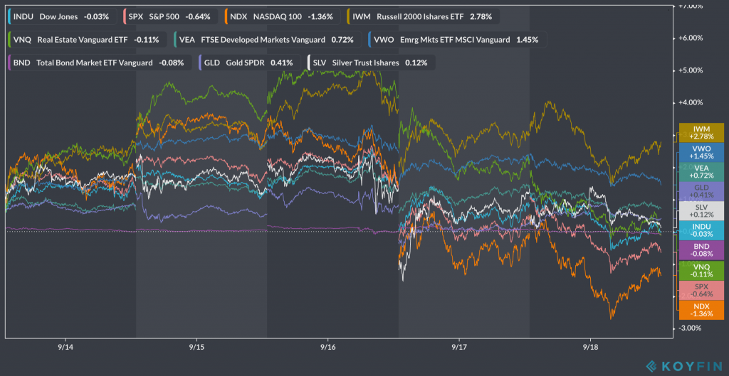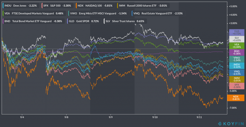 Saturday. Labor Day weekend. Equities dropped Thursday and into Friday. The Nasdaq dropped nearly 5% on Thursday. The mild drop doesn’t bother me because I have a check in the mail for a 401k rollover, and I’ve been waiting for a much bigger drop than this to deploy the rest of the cash in my portfolio back into the market. Of course, it doesn’t look so bad when you zoom out a bit, even just by looking at the week: