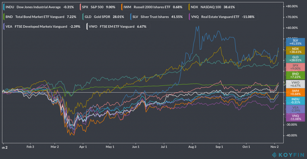 I read a month-old post from Lewis Johnson, Where We Are in the Cycle: Revisiting Asset Allocation & Indicators. I’m glad I recently discovered him on Panic with Friends. I think everyone investing heavily in chasing the next hot tech or WFH stock should spend some time on his blog. “Finally, another scenario, by far the trickiest to navigate, is that there simply are no precedents. Can you think of another time when massive monetary stimulus combined with a workforce locked at home, with an investing grubstake care of the government, trading stocks online – with no-cost commissions!? I cannot. As we think through these questions, we are grateful for the benefits of diversification, and hope that you are too.”
