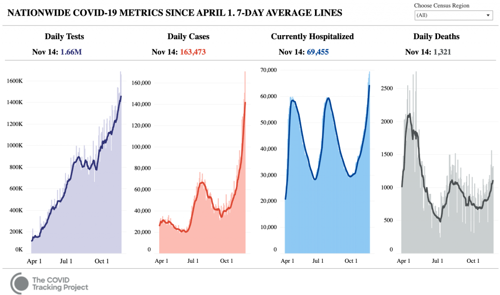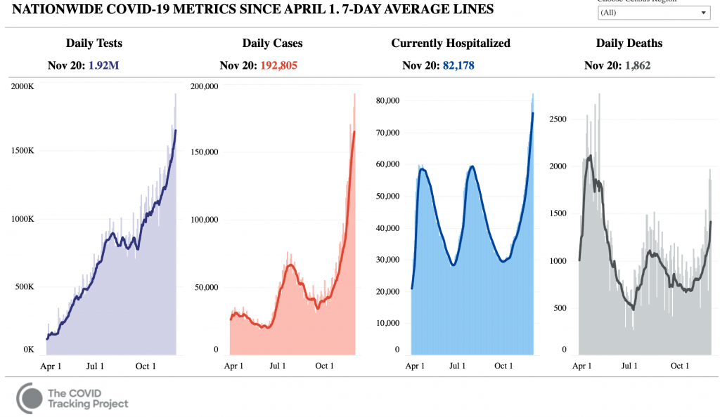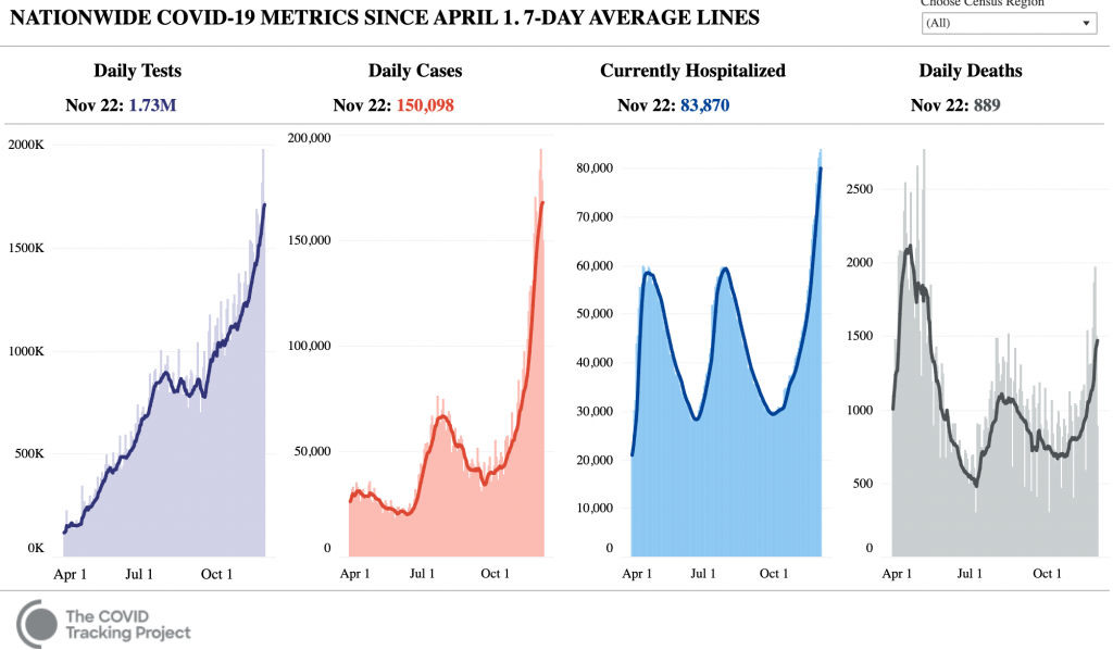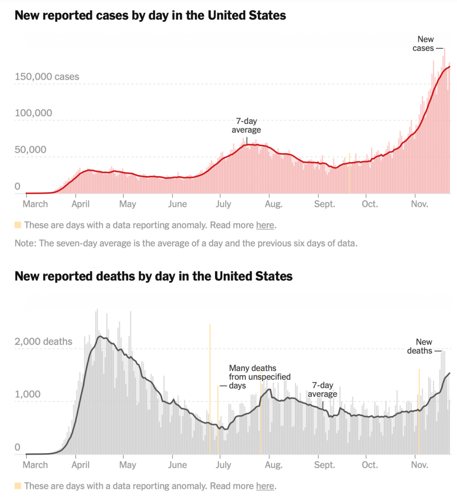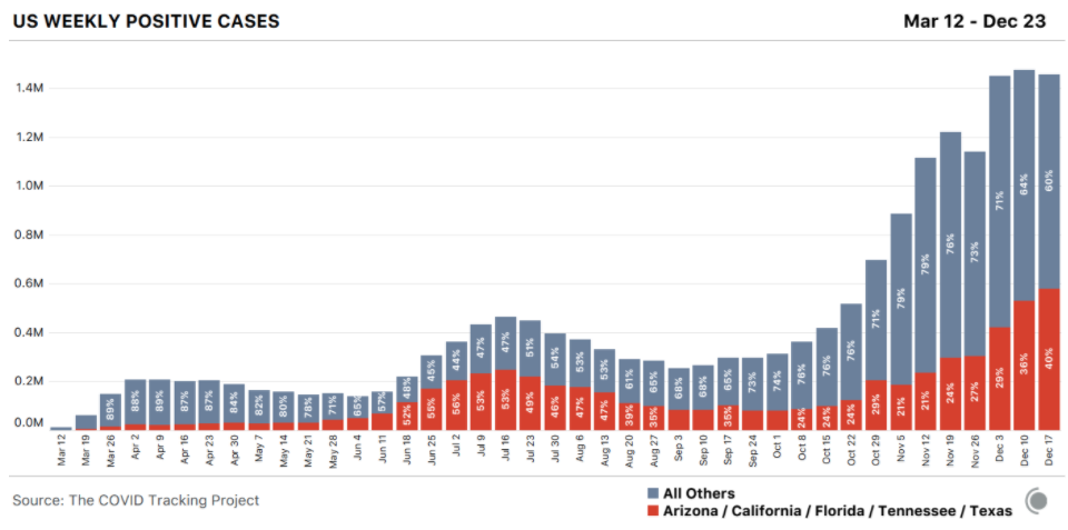 From this week’s blog post by The COVID Tracking Project: “December is already the deadliest month since the beginning of the pandemic in the United States.” January will inevitably be even worse given the amount of traveling taking place for the holidays.