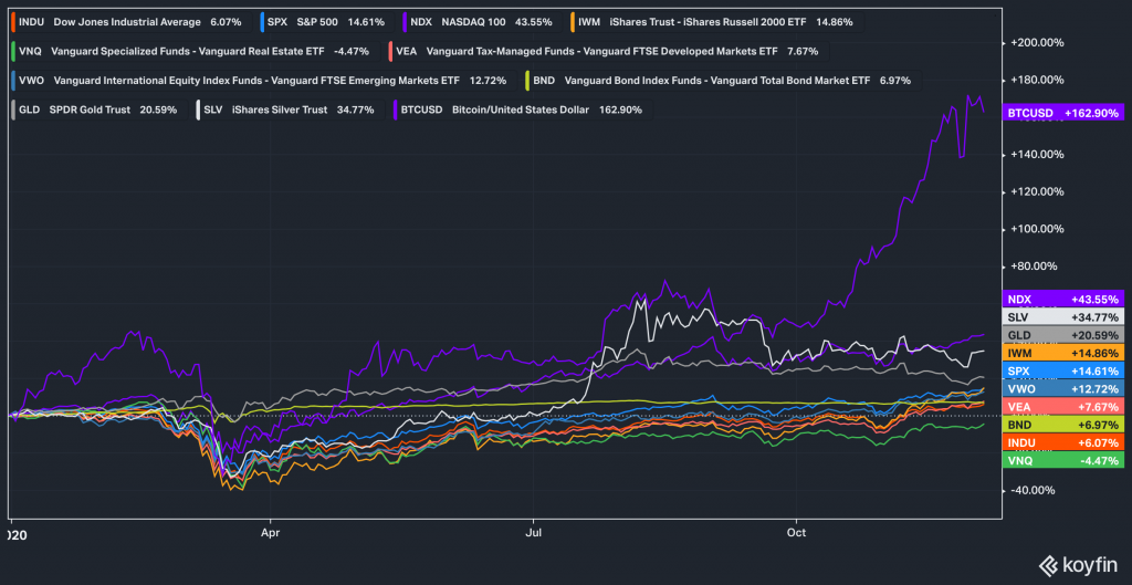 COVID-19 is far from over. 2021 will be unlike any other year we’ve experienced. Hopefully more predictable than 2020, but still far from normal. Be thankful for what you have. Don’t take your health or financial positions for granted. Don’t get cocky. Luck was involved. And urge people to be a little less selfish. We’re all part of a system and our actions impact other people in ways you could never imagine– for better and for worse. Wear a mask, physically distance yourself, and get your vaccine when it’s your turn.