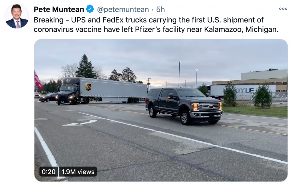 U.K. Approves Pfizer Coronavirus Vaccine was the big headline earlier this week. “First to be vaccinated will be doctors and nurses in the country’s National Health Service, along with nursing home workers and people 80 and over with previously scheduled doctors’ appointments… Eventually, people will get their shots in mass vaccination centers being set up by the military at soccer stadiums and racecourses, or at doctors’ offices and pharmacies.”