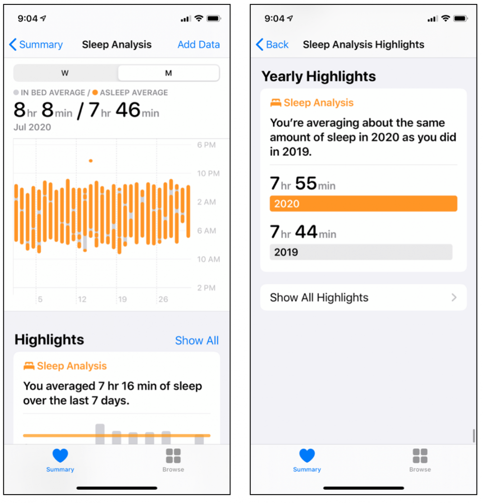 - Averaging 8:08/night in 2020 (compared to an averaged of 7:44/night in 2019).