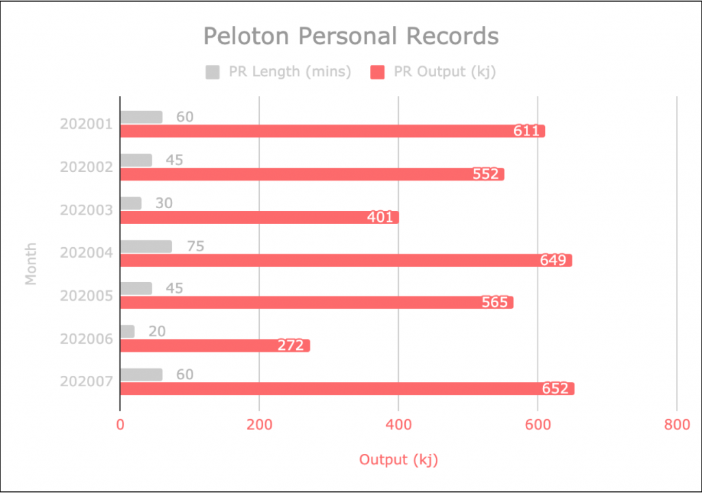 - 45 minute PR resulting in 568kj (previous 45min PR was 565kj)