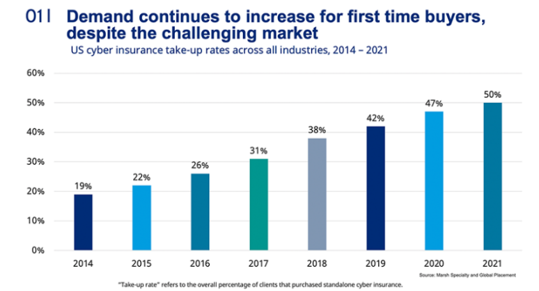 - Advancements in automation and the effectiveness and efficiency of security posture reviews and scans to help understand and price risk appropriately – decreasing premiums for those with great cybersecurity postures, or increasing and proactively pushing for improvements.
