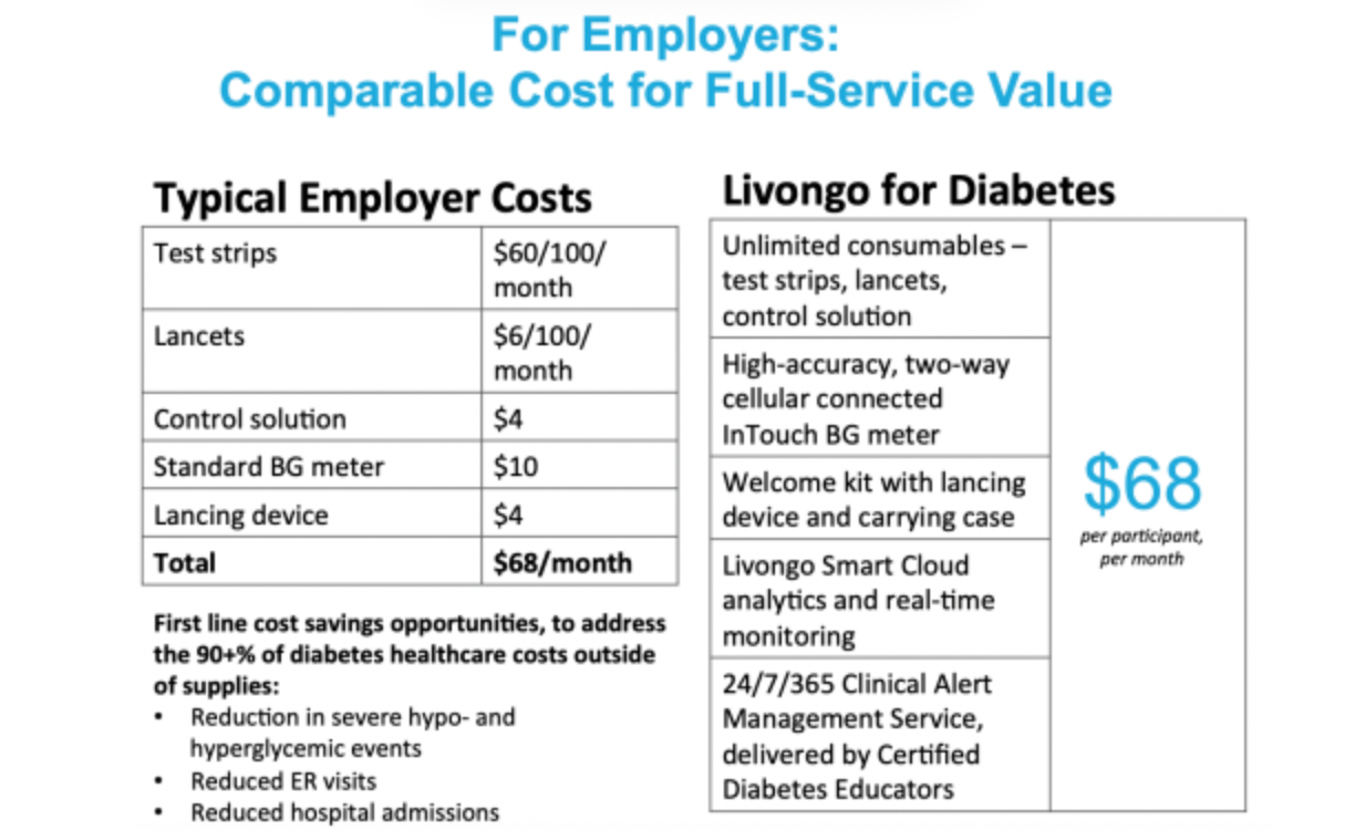 Let's touch on Livongo for those who aren't familiar (ignoring recent events since the Teladoc acquisition). Incentives in healthcare are fundamentally misaligned usually. Providers make more money from sick patients than healthy ones, punting prevention out the window. I actually covered some of these issues and what healthcare 3.0 may look like in this post. Anyway, in the case of Livongo, they decided to make self-insured employers their primary customer – those who paid for patient care. Healthy patients/employees meant lower insurance bills and less sick days. This is how they landed on charging employers a monthly fee per member (employee) and a B2B2C business model. The insight that employers could save money by promoting good health, that Livongo they could charge for this, and that members would benefit made for a great win-win-win. Livongo also did some revolutionary things such as giving out test strips for free.
