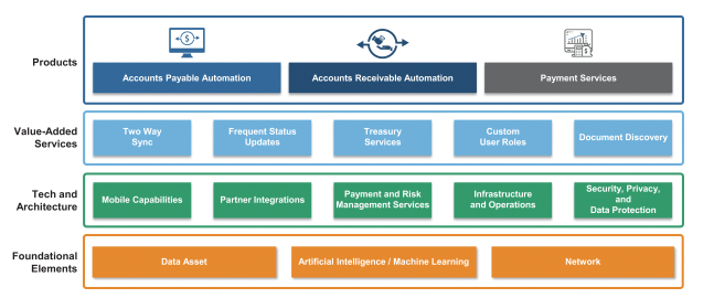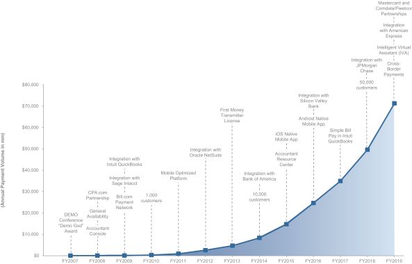Bill.com began as an online business payments network for SMBs. The platform now supports AP / AR automation, international payments, virtual card support, workflow management, and integrations of these processes with accounting software like QuickBooks and Xero. During a time when 'most SMBs were still dependent on manual accounts payable and accounts receivable processes,' BILL provided digitization and automation so customers could manage their financial workflows end-to-end, placing BILL near the center of an SMBs financial operation.
