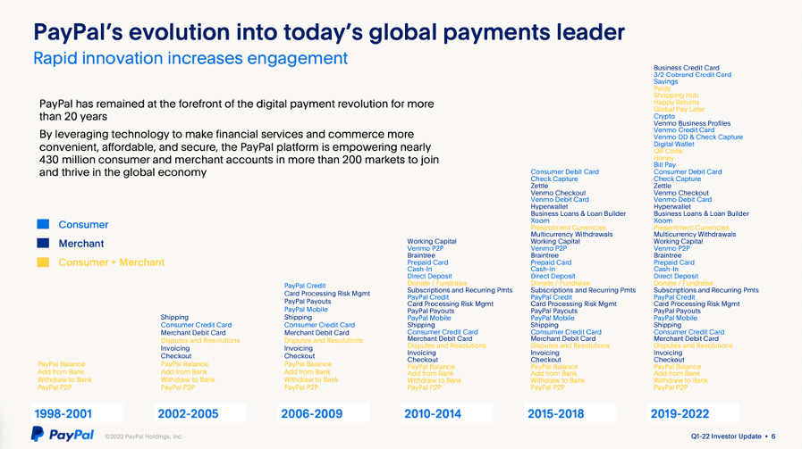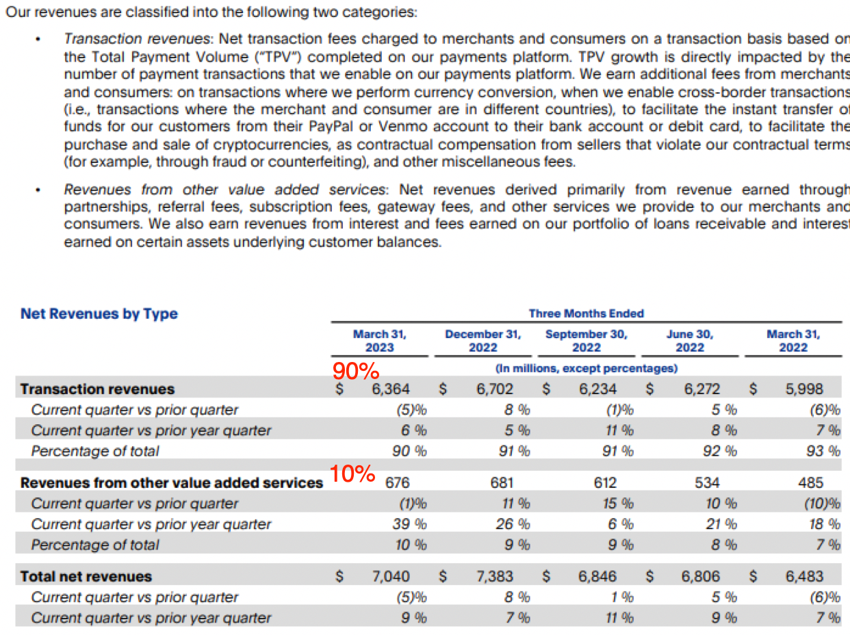 PayPal breaks revenue out by transactional vs. other value added services. Similar to when they originally went public, 90% of the revenue today is still from transactions.