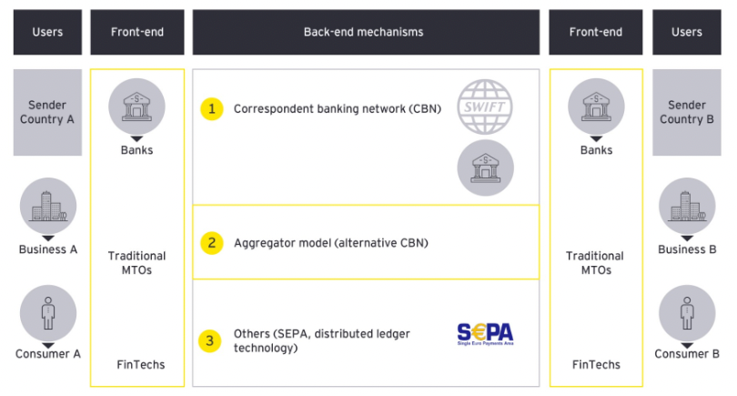 Here are the high level typical structures of a B2B cross-border payment from EY today: