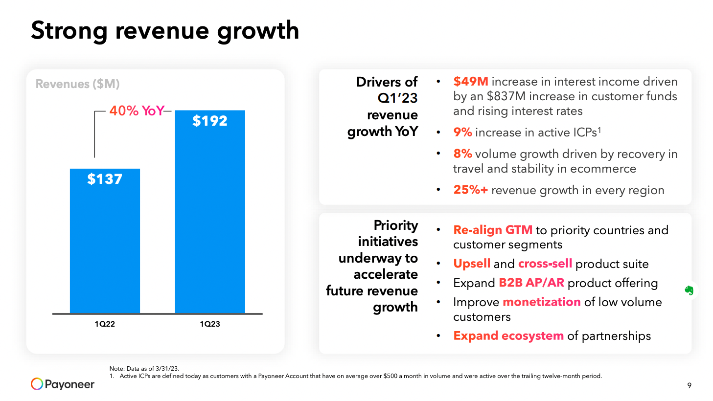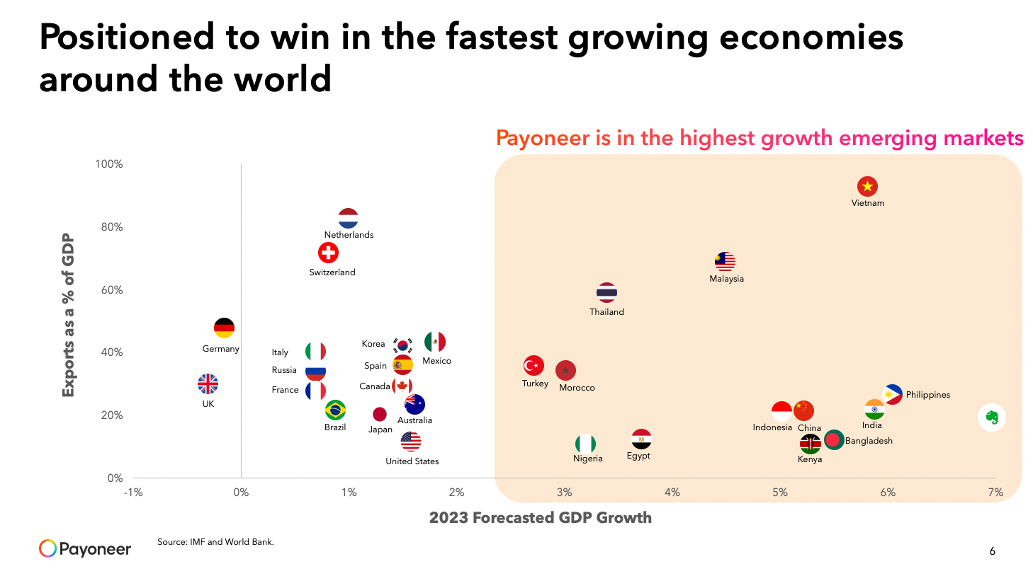 "Our platform enables enterprises to make Mass Payouts to the entire world using a broad set of localized payment methods in addition to be able to pay Payoneer small business customers. We enable our small business customers to get paid from marketplaces and their B2B customers into their Payoneer Global Multi-currency Account. We provide additional services to our customers, focused on helping them manage and grow their business... Cross-border trade (i.e., transactions where the merchant and consumer are in different countries) is an important source of our revenue and profits. Cross-border transactions generally provide higher revenues and operating income than similar transactions that take place within a single country or market."