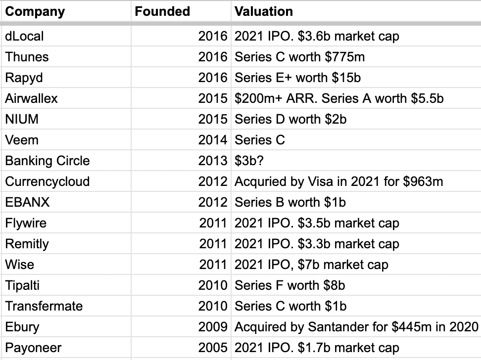 I stuck with modern, focused companies, obviously excluding actual banks, WU/Convera, Corpay/Fleetcor, OFX, Visa, Mastercard, SAP, etc. FX Intelligence has mapped the full landscape: