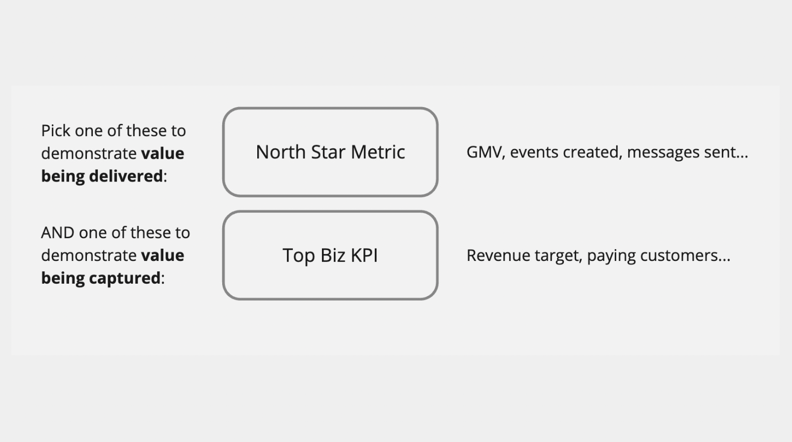 I like thinking about Slack as an example. I remember first setting it up for Blispay in 2015. It was so much better than Skype and Hipchat. Cross-device support was magical and channels were much better than the endless groups you had to create in Skype. Anyway, early on, I think their north star was 'paid users.' It evolved over time to be 'succcessful teams,' which was when 5 people in an org exchanged messages because at that point, it was highly likely they'd be hooked because of the value they are starting to gain. 'Successful teams' represented value being delivered to customers, while business KPIs like revenue measured value that the business was capturing as a result.