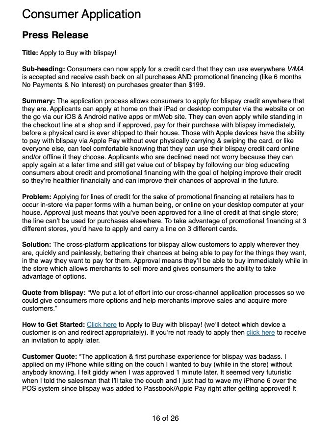 Always cringy to revisit old work but figured I'd share the one below. I drafted a bunch of these at the end of 2014, the month before we officially started Blispay so we could hit the ground running with product development right out the gate.