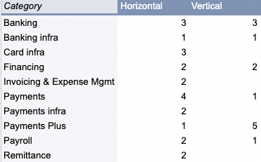 - I think the 'embedded banking' thesis is still valid, justifying its place as one of the hottest fintech theses in modern times. Therefore, the question is the path. Can starting out as a vertical neo(bank) result in a venture outcome, or will it often be better to back into banking through vertical business software (à la Payments Plus)? I'm inclined to believe the latter at this point, but these are fun thought exercises, and it'll be interesting to see how things progress over the next five years. I should also clarify that there's some subjectivity in labeling. I'm considering Mercury as horizontal, given they serve SMBs across sectors (I even use them for my wife's children's books sales, a very, very, very small business) even though they started out focusing on venture-backed startups broadly.