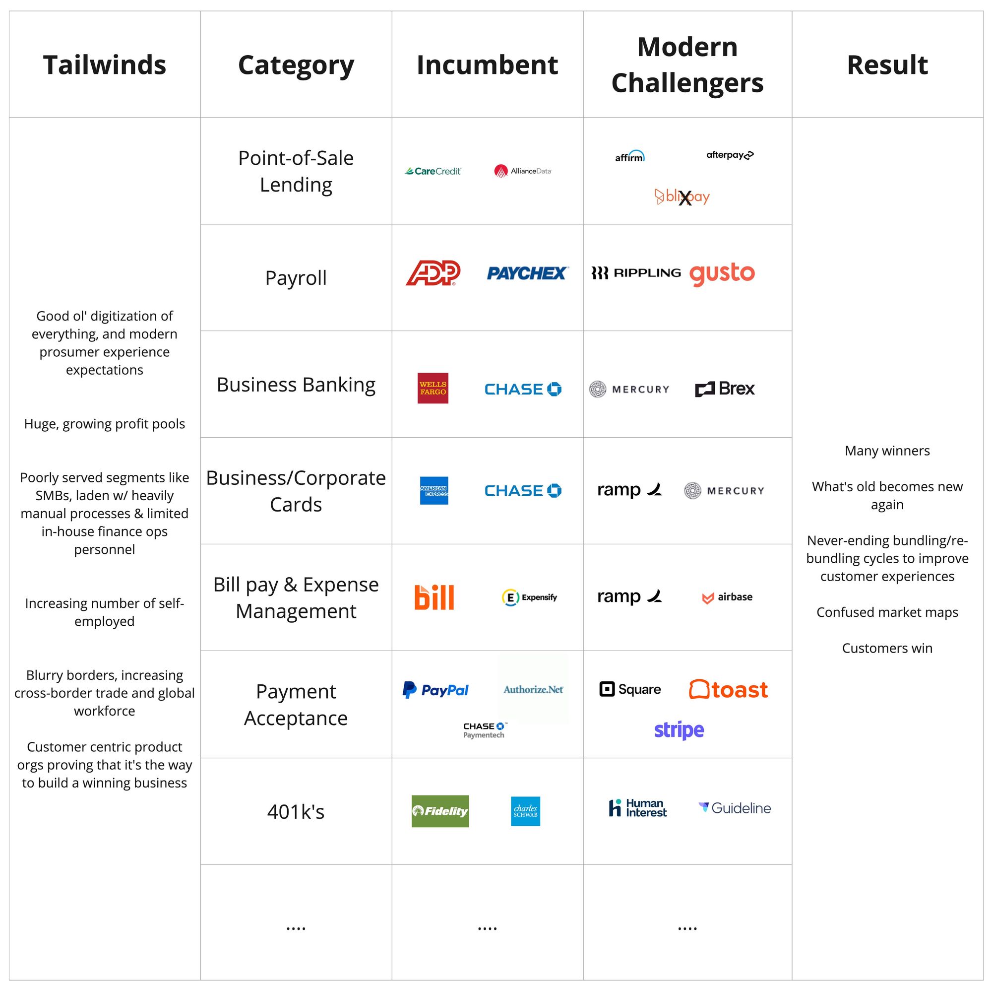 And time after time, a modern, customer-centric player will come out of nowhere and chip away at them, creating a huge business.