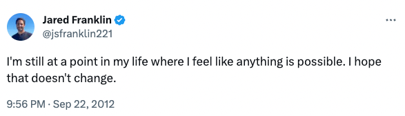 To close, I'll make a pitch for more optimism about the future. Incredibly meaningful companies like Square, Wise, Stripe, Shopify, and Nubank were born in the last era. I can't wait to see how they evolve and what new emerges going forward. Life and careers are fleeting. Let's make the most of them. I just came across the tweet below from 11 years ago. Thankfully it's still relevant.