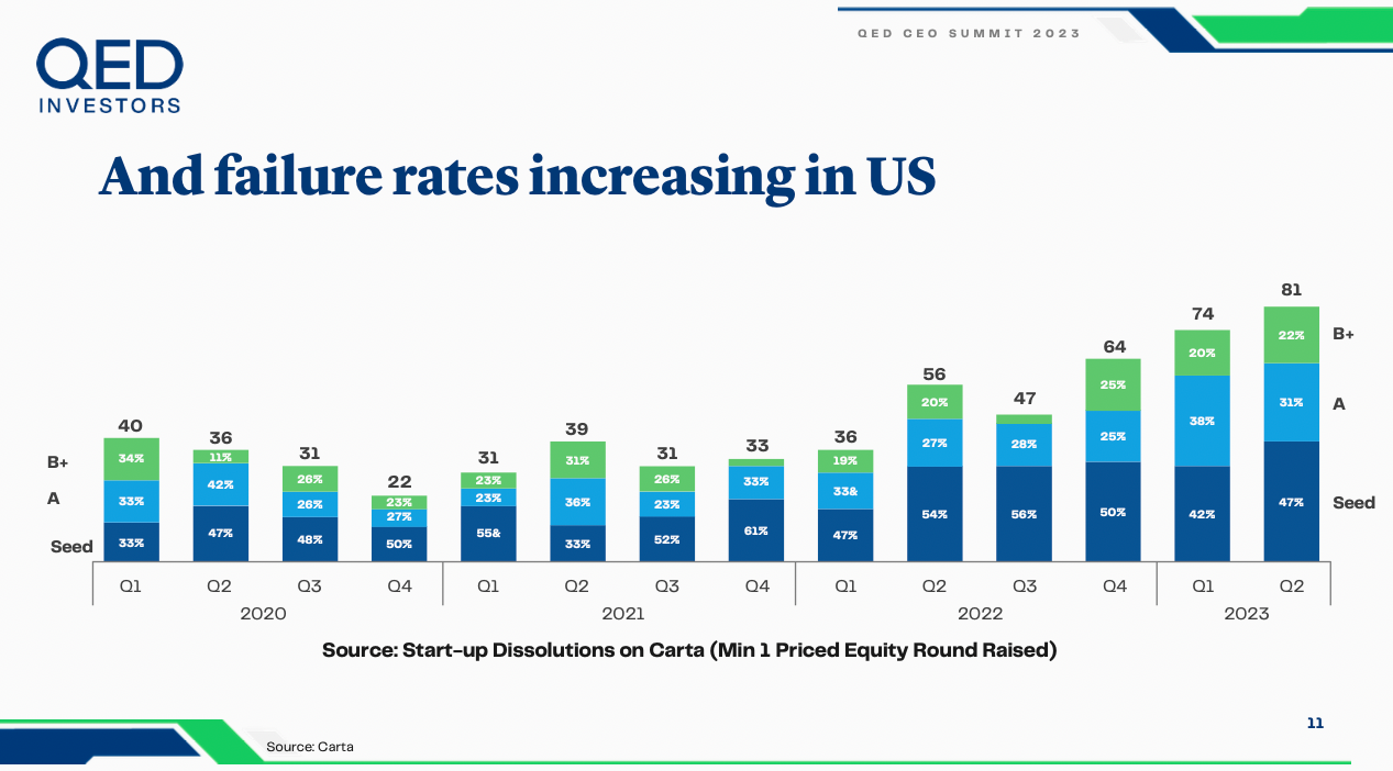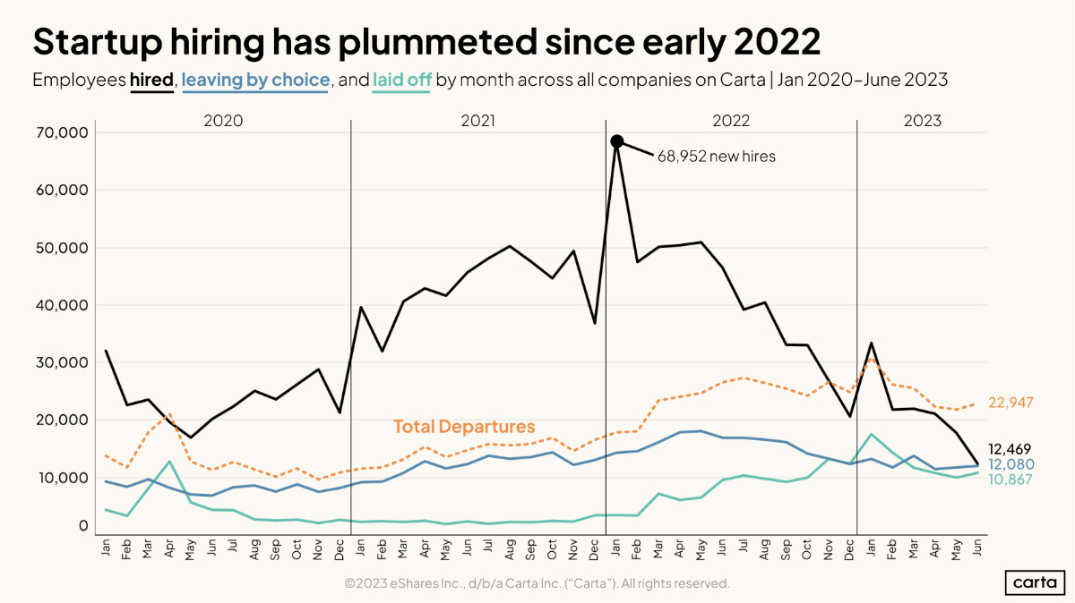 It's a shitty job market (on both the venture and company sides). Though some companies might be in a healthier position now, an imbalance between supply and demand for knowledge workers persists. Layoffs have slowed but many companies still aren't growing headcount. Furthermore, we're set to see a mass extinction of early-stage startups in the coming 6-18 months, flooding the market with even more job seekers.